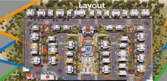 - يضم الكمبوند العديد من الوحدات السكنية الفاخرة بمساحات مختلفة.